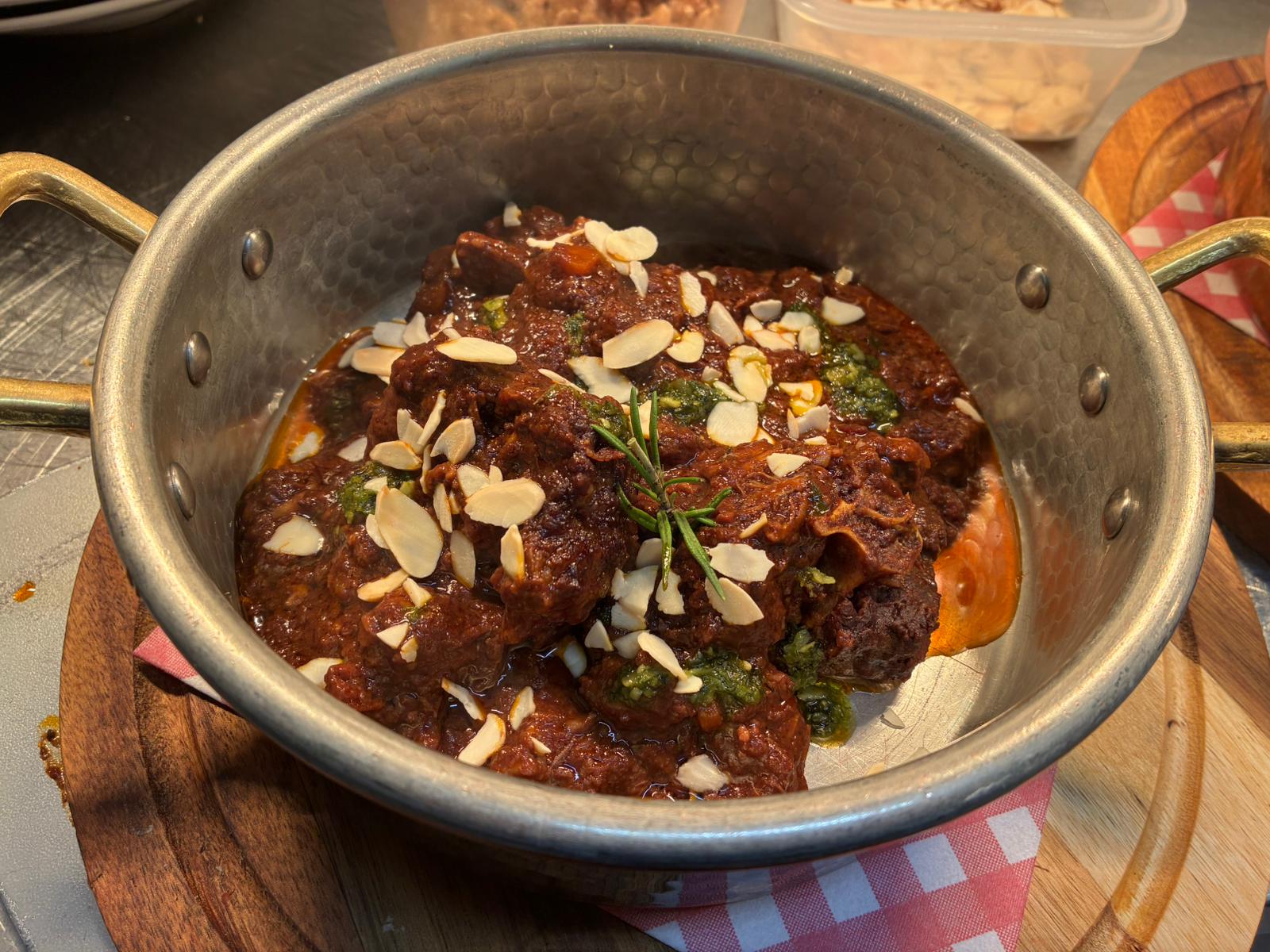 Coda alla vaccinara con mandorle tostate, pesto di sedano